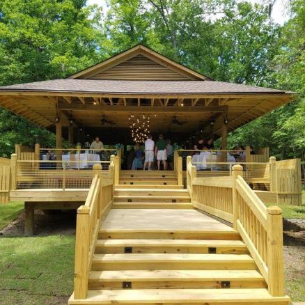The original pavilion was built in 1988, but has since been redesigned and rebuilt to accommodate today’s needs. It serves as a gathering place for overnight groups to have early morning or evening worship services, our education program to use for multiple activities, and as an outdoor wedding venue.